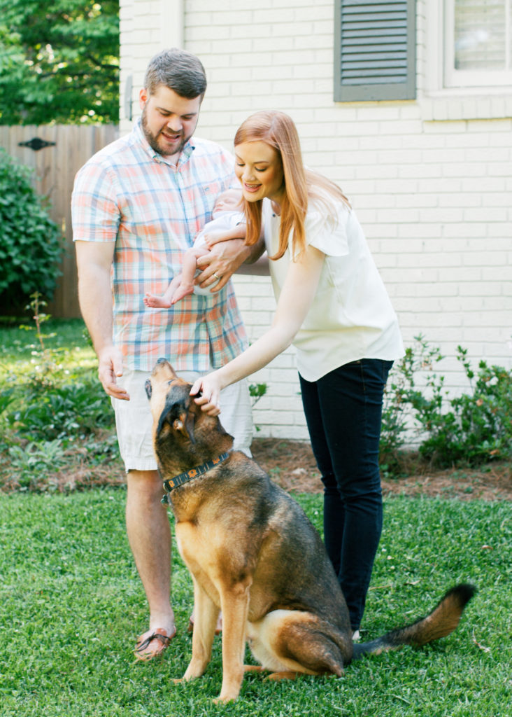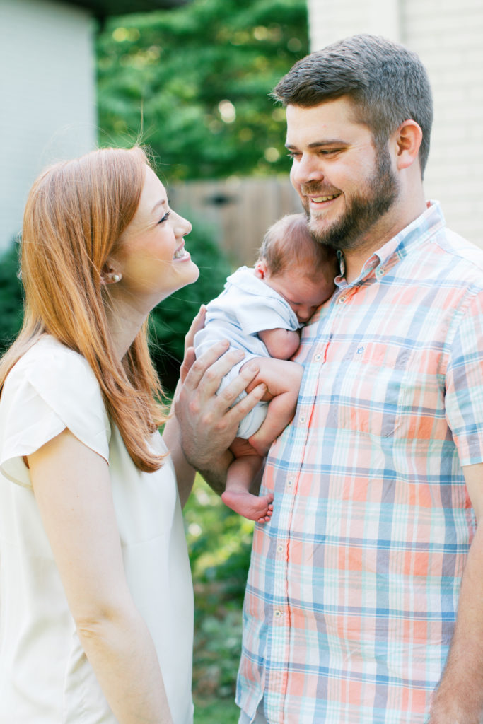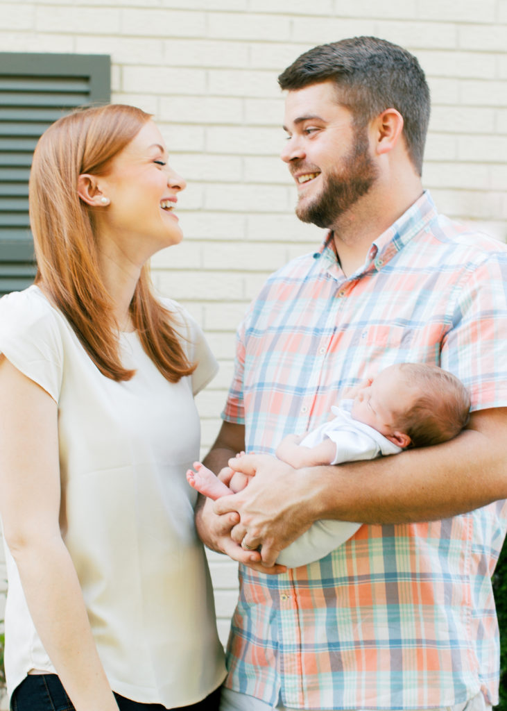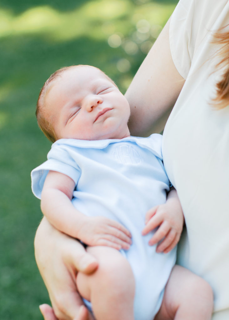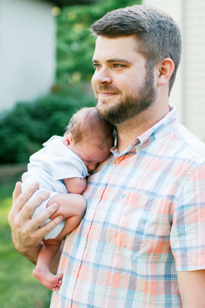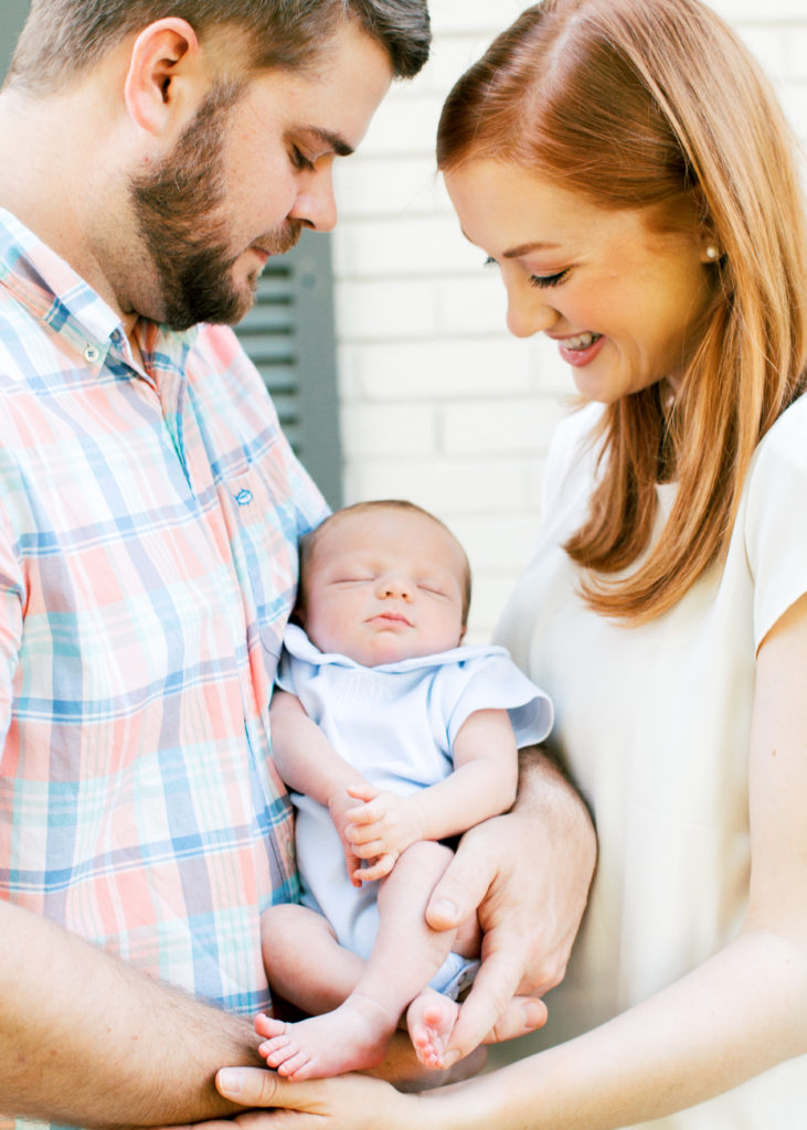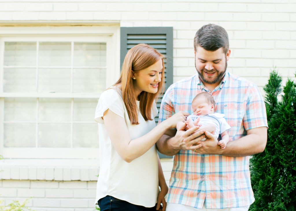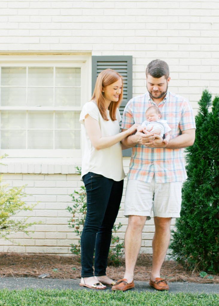 I met Caroline and Stuart at their home for this beautiful outdoor newborn session for their new baby boy. The white brick and gorgeous summer green were the perfect backdrop to capture all the southern sweetness of this new family.