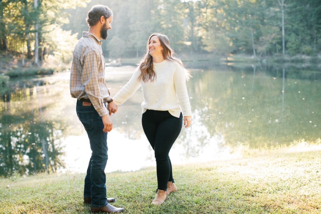 Well this was the most fun proposal and engagement I’ve gotten to capture yet! Morgan is my beautiful sister-in-law, and she had booked a session with me a few weeks out for photos of her and her boyfriend, Brad to hang in their home. Little did she know that he was secretly planning to surprise her and propose instead!! It was sooo hard keeping the nerves down when I saw them, since usually during proposals, I’m hiding and don’t talk to the couple until afterward! But everything went as smooth as can be, and we were able to take engagement photos in front of a breathtaking pond on a family friend’s property in Fayetteville. Couldn’t have asked for a more perfect, sun-soaked evening with these two! Now, let’s get you married!!