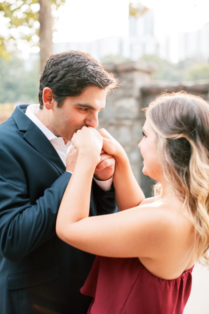 With fall fast approaching, I had this vision to do a styled session with a couple that would feature those deep, warm tones of autumn paired with an elegant setting. This little nook of Piedmont Park is one of my favorites, and although the park was jam-packed on this weekend night, this area was pretty secluded! Zac and Mariah graciously answered a model call I put out on Instagram for an engaged or married couple, and completely dressed the part!! I arranged a bouquet for Mariah to hold (thank you Trader Joes flower section) with the idea that I wanted it to look like fall, but have an air of whimsy and wildness to it! This sweet couple could not have been more perfect to help me capture this dream session! This was something that just fueled me a ton creatively, so I’m planning to do a couple more before the year is over!